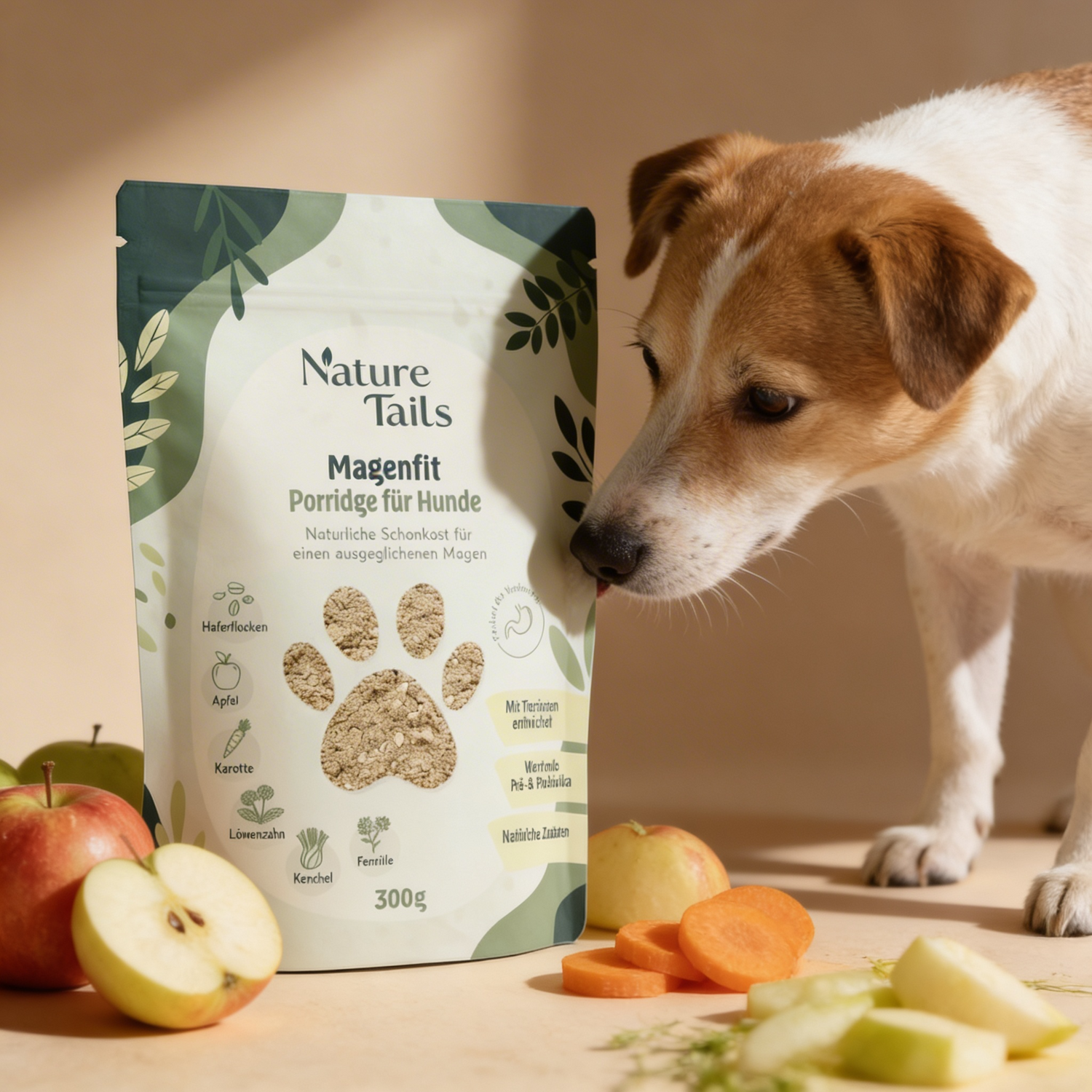 Nature Tails – MAGENFIT Hunde Porridge mit Prä- & Probiotika gegen Magenprobleme | Darmkur | verbesserte Verdauung | Barf-Zusatz | Leckere Schonkost | Natürliche Zutaten | Fester Kot